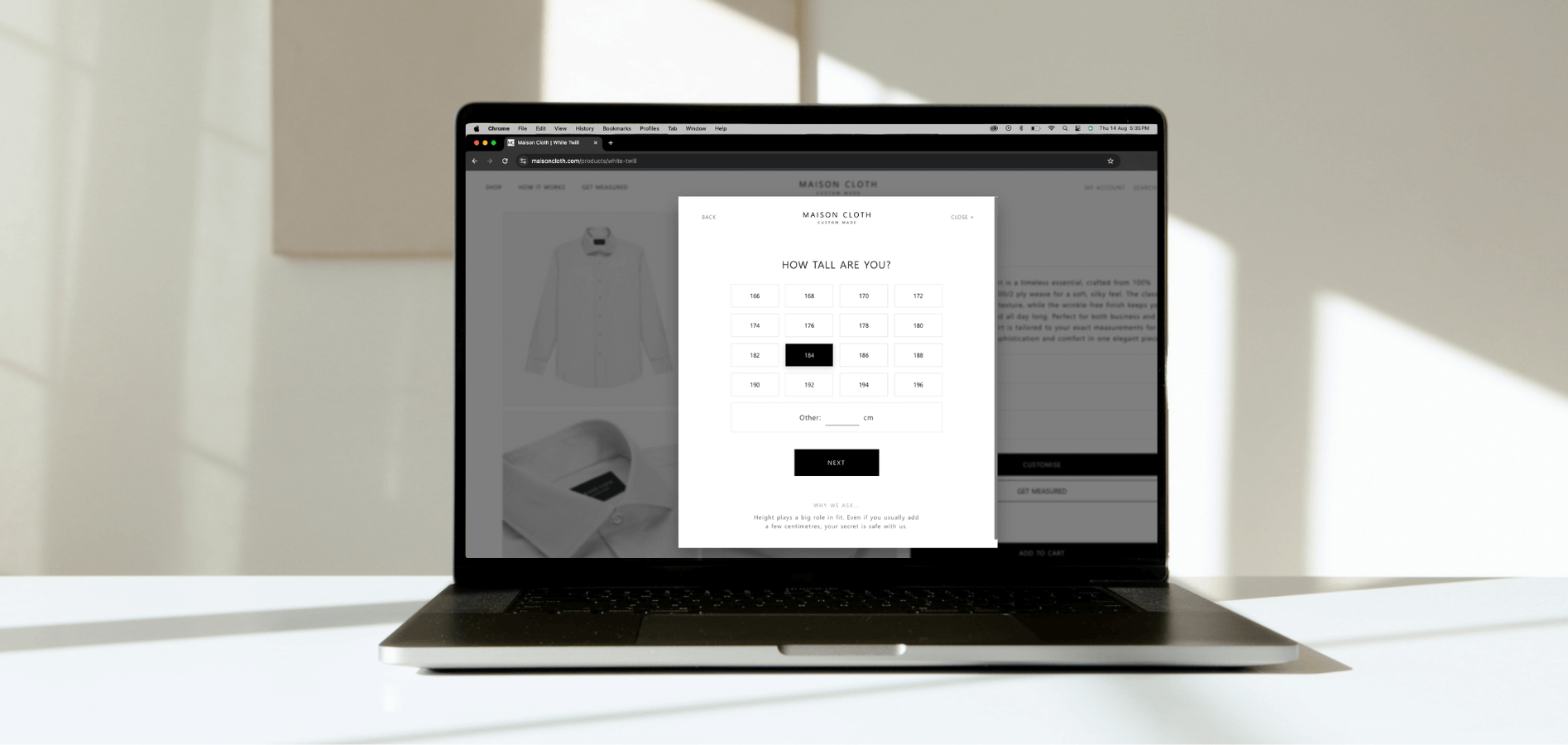 At Maison Cloth, we promise a fit you'll love, or we'll fix it. Our Fit Guarantee is designed to ensure your complete satisfaction.